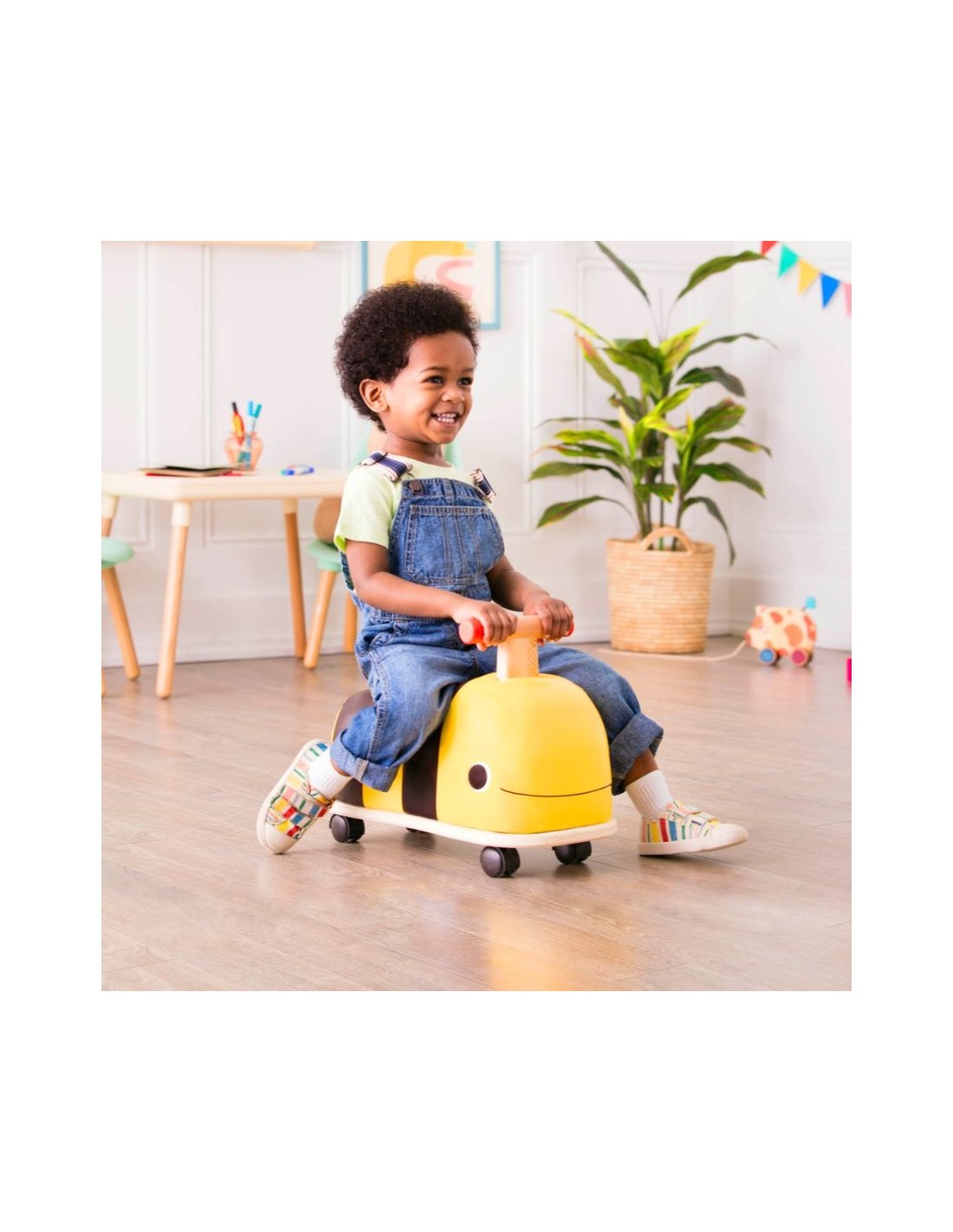 ¡Súbete al Boom Buggy y corre por todas partes! Hecho de madera natural y equipado con un asiento suave y cómodo, este correpasillos de madera permite a los niños empujar y deslizarse por toda la casa.