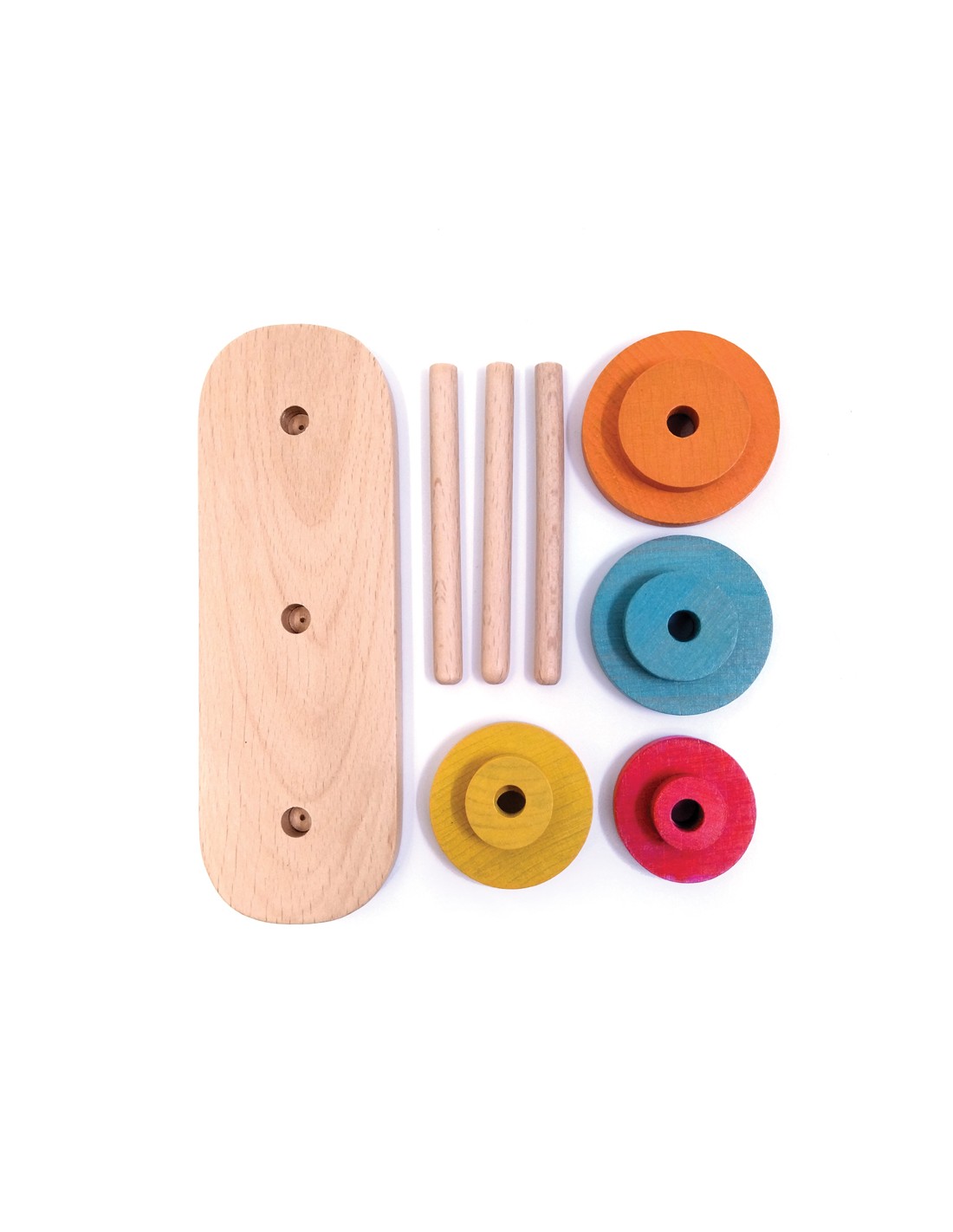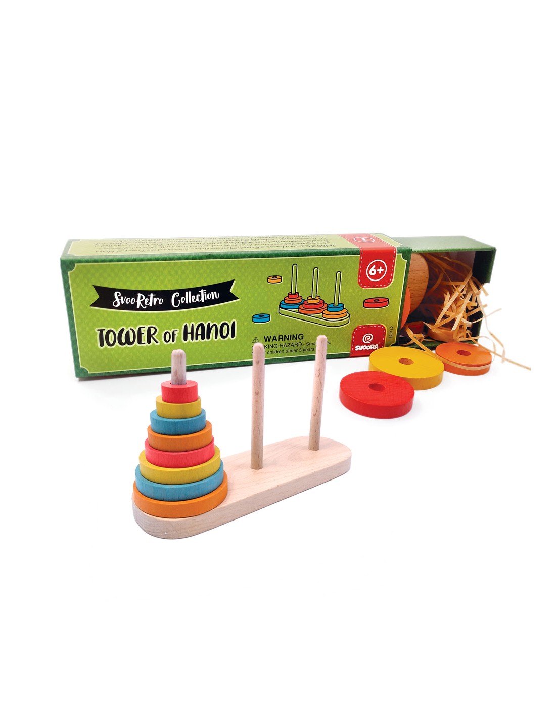 La Torre de Hanói, de nuestra Colección SvooRetro, es un rompecabezas matemático que fomenta el pensamiento estratégico y el razonamiento secuencial. Gracias a él, los niños se vuelven más observadores, desarrollan su concentración y se familiarizan con la discriminación de tamaños y los procedimientos de resolución de problemas.