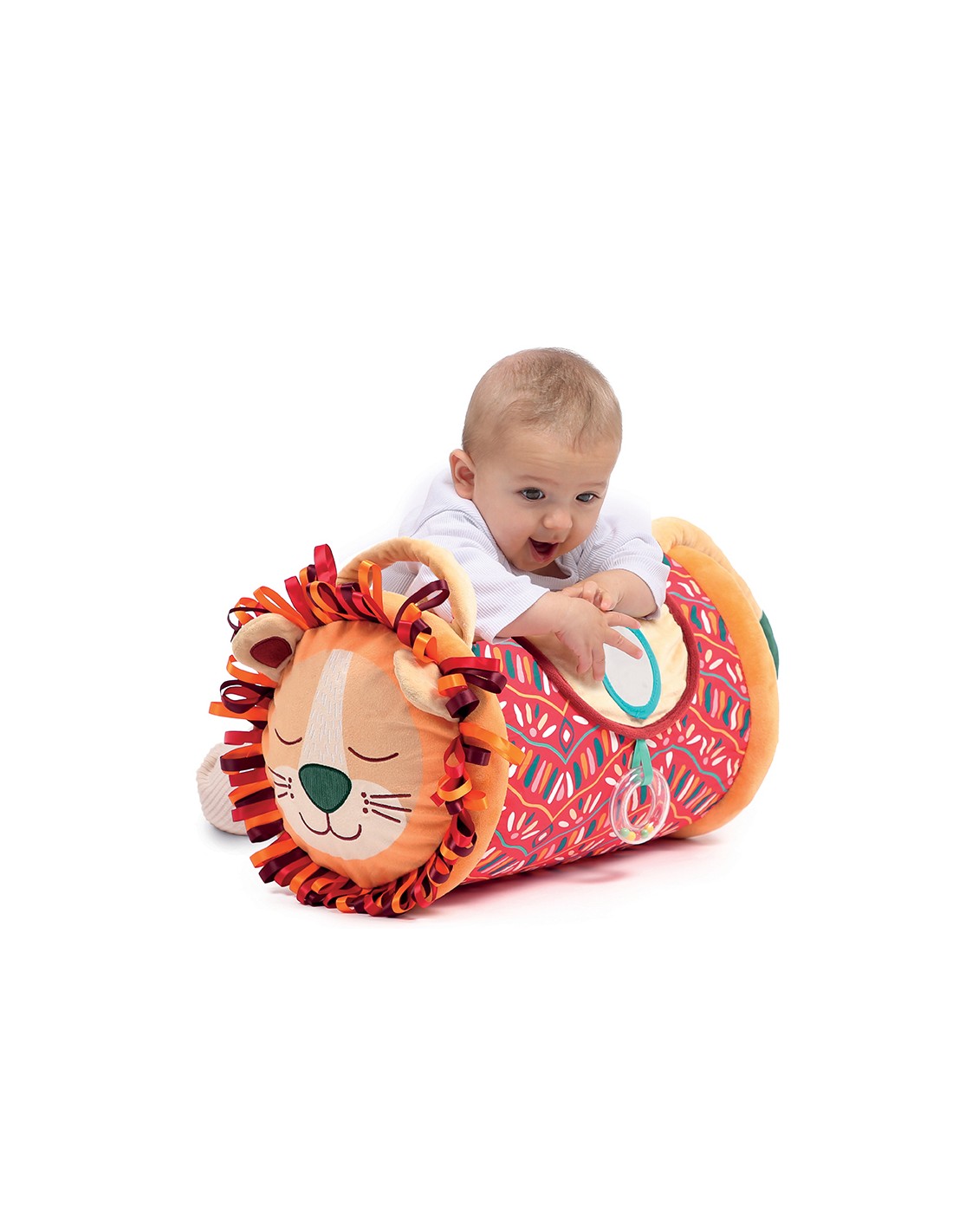 El rodillo de actividad "León" es un cilindro hinchable con una funda suave y muy blandita. Ayuda a los más pequeños en el desarrollo de su motricidad y su coordinación de movimientos.