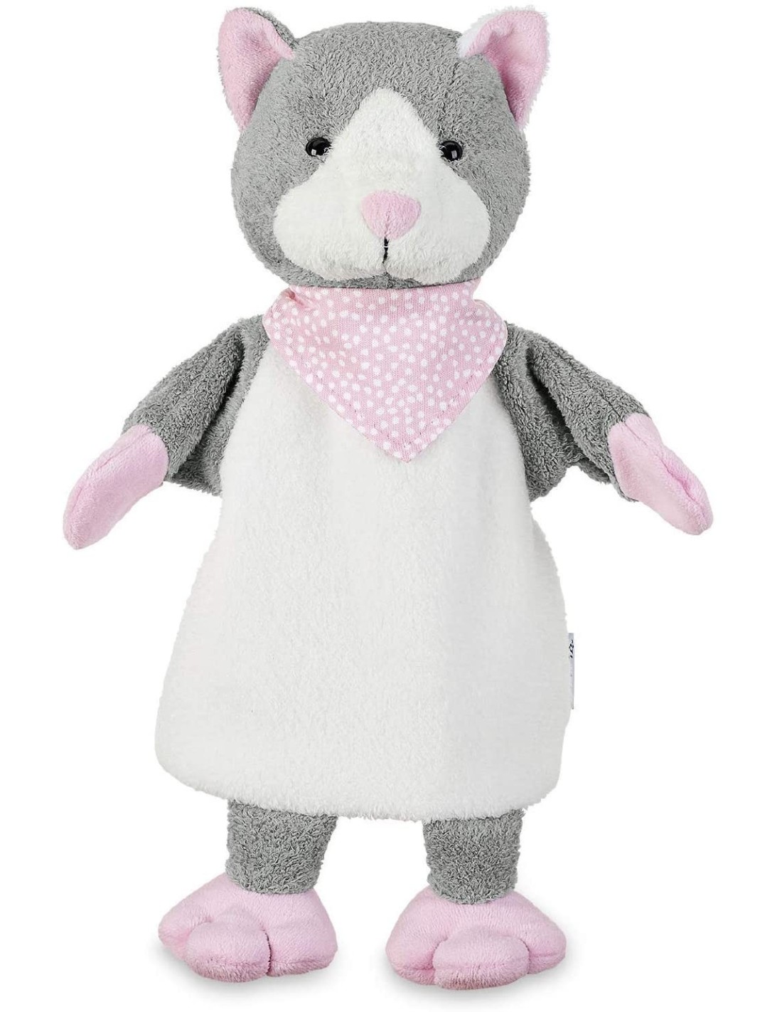 Marioneta de mano GATO, recomendada para todas las edades. Muy suave, con diferentes texturas y puede lavarse en la lavadora.